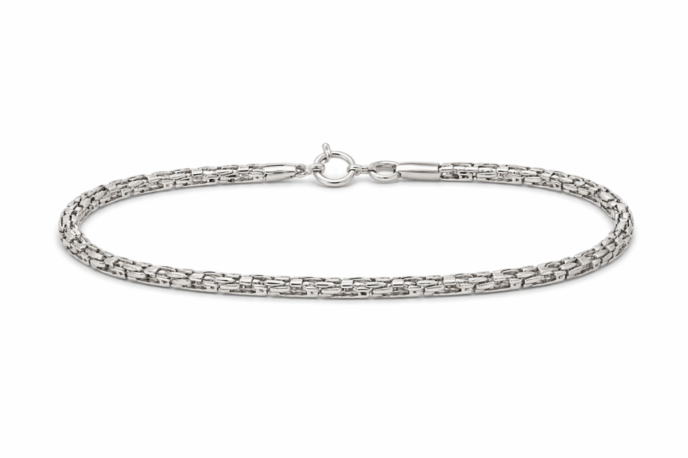 Tento stříbrný náramek zaujme svou nenápadnou krásou a precizním zpracováním. Jemný článkový vzor vytváří elegantní strukturu, která působí lehce, harmonicky a přirozeně podtrhuje lesk stříbra.