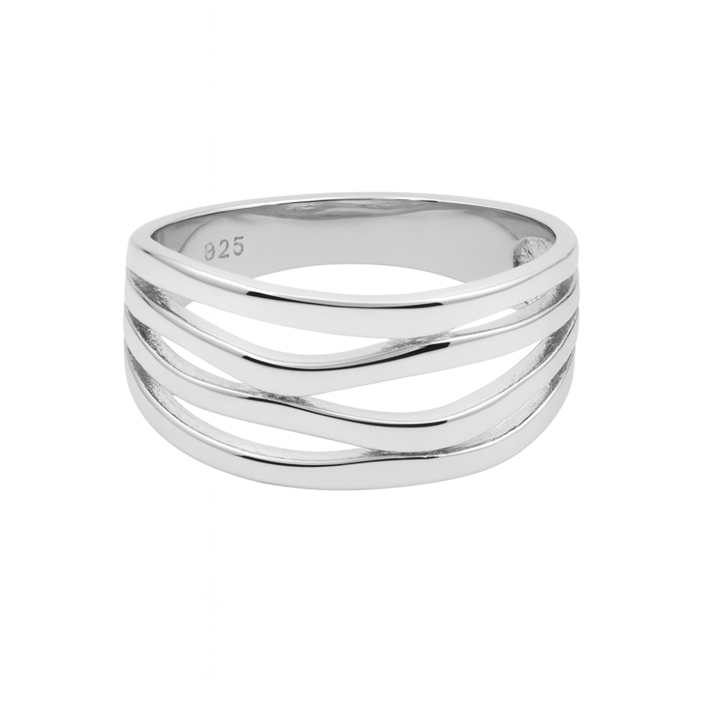 Dámský stříbrný prsten v elegantním, propleteném designu. Hmotnost prstenu u velikosti 56 je 3.5 g. Šířka prstenu je 1.0 cm.