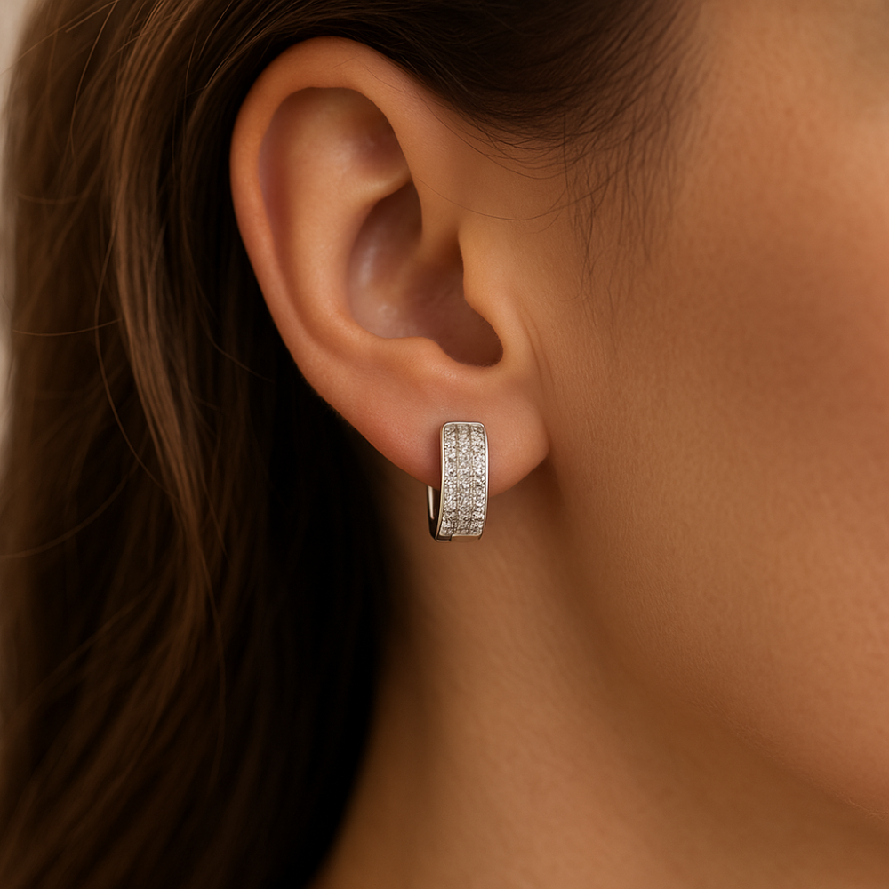 Náušnice mají moderní, přesto velmi univerzální design, díky kterému se hodí jak k běžnému dennímu outfitu, tak ke společenským příležitostem. Bílý zirkon dokonale imituje diamantový lesk – jasný, čistý a nepřehlédnutelný. Kvalitní zpracování a pevné zapínání zajišťují pohodlné a bezpečné nošení po celý den.
