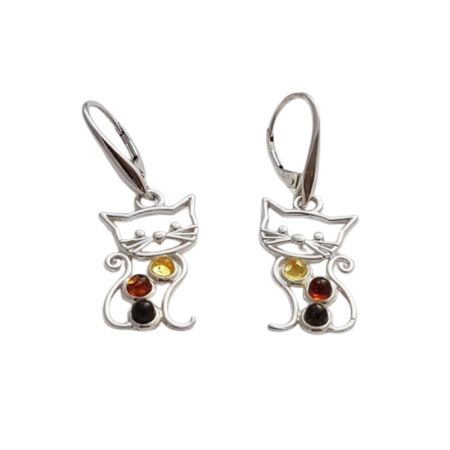 Stylizované kočičky ze stříbra ryzosti 925/1000 zdobí tři jantarové kameny v různých odstínech – zlatavém, medovém a tmavším koňakovém. Každá barva zachycuje světlo jiným způsobem a s každým pohybem náušnic se jemně rozzáří. Celek působí lehce, hravě a přitom velmi harmonicky.