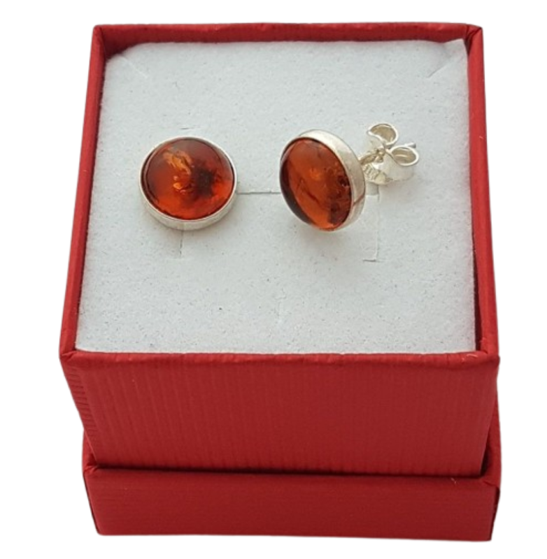 Kulatý tvar jantarového kamene je zasazen do hladké stříbrné obruby, která nechává vyniknout jeho přirozený lesk i jedinečnou kresbu. Díky peckovému provedení jsou náušnice pohodlné, lehké a ideální pro celodenní nošení.