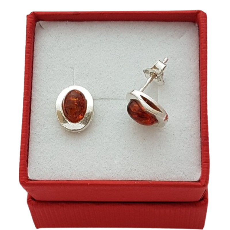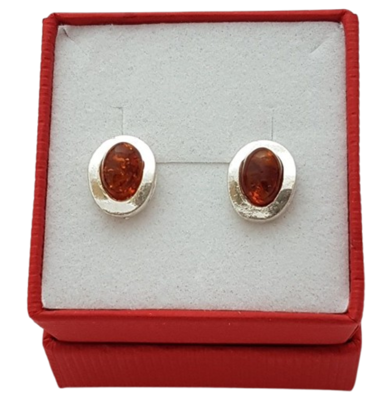 Oválný tvar jantarového kamene je elegantně zasazen do hladké stříbrné obruby, která podtrhuje jeho přirozený lesk a barevnou hloubku. Díky peckovému provedení působí náušnice velmi decentně, pohodlně se nosí a snadno se kombinují s dalšími šperky.