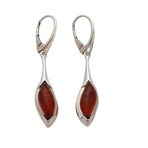 Tyto stříbrné náušnice s přírodním jantarem zaujmou svým štíhlým, protáhlým tvarem a hřejivými tóny pravého jantaru. Jsou vyrobeny ze stříbra ryzosti 925/1000 a osazeny pečlivě vybraným přírodním jantarem, jehož jedinečná kresba činí každý pár originálním.