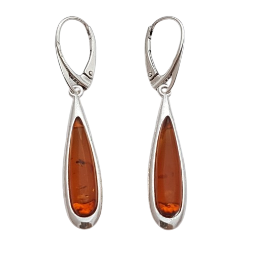 Jantar v teplém koňakovém odstínu v sobě nese světlo i hloubku. Při každém pohybu se v něm odráží jemné záblesky, které dodávají náušnicím živost a energii. Stříbro ryzosti 925/1000 kámen hladce obepíná a vytváří čistý, vyvážený rám.