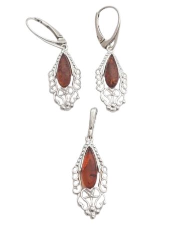 Tento stříbrný přívěsek s jantarem zaujme svou štíhlou kapkovitou siluetou a jemným dekorativním zpracováním. Přírodní jantar v teplém koňakovém odstínu je vsazen do elegantního filigránového rámu, který dodává šperku vzdušnost, lehkost a jemnou historickou noblesu.