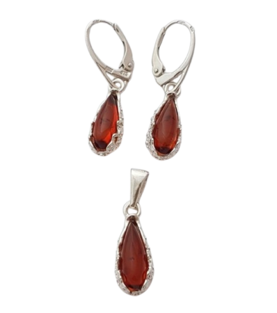 Jantarový přívěsek ozdobný ve tvaru slzy je vyrobený ze stříbra o ryzosti 925/1000.