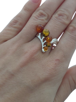 Koňakový, medový i světle žlutý jantar společně vytvářejí harmonickou hru barev a světla. Každý kámen má svou jedinečnou kresbu, díky čemuž je každý prsten originálem. Jantar je po staletí vnímán jako kámen slunce, vitality a klidu – v tomto šperku působí živě, přirozeně a velmi žensky.