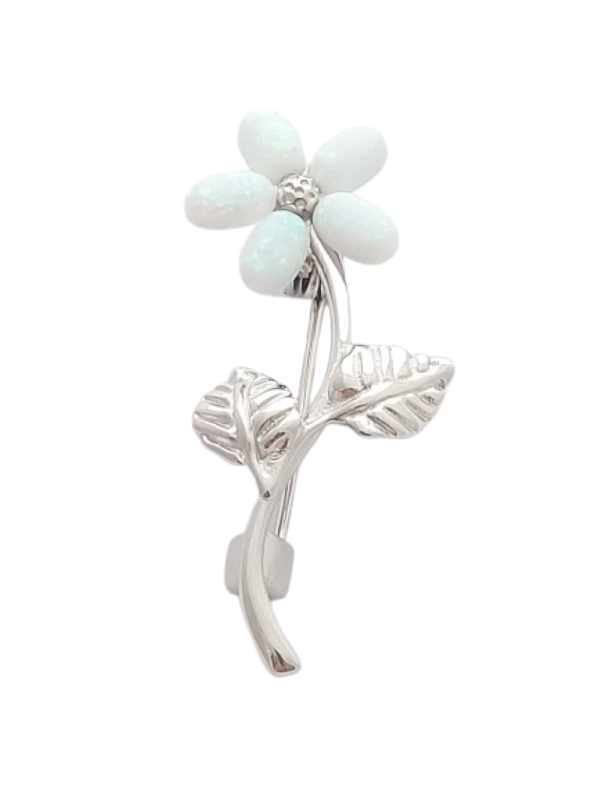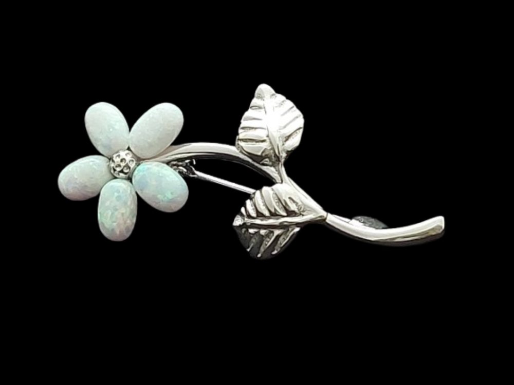 Opálová brož květina s bílým opálem. Rozměr brože: 3.8 cm x 1.7 cm Hmotnost přívěsku: 2.7 g.