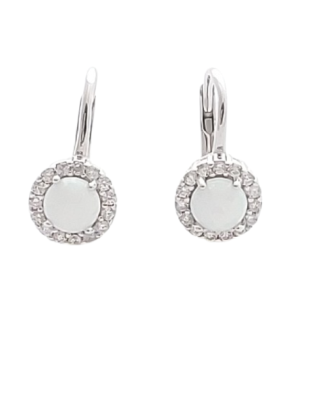 Tyto elegantní náušnice jsou vyrobeny ze stříbra ryzosti 925/1000 a zdobeny bílým opálem, který zaujme svým mléčným odstínem a jemnou hrou světla. Centrální kámen je obklopen čirými zirkony, jež dodávají šperku decentní jiskru a luxusní vzhled.