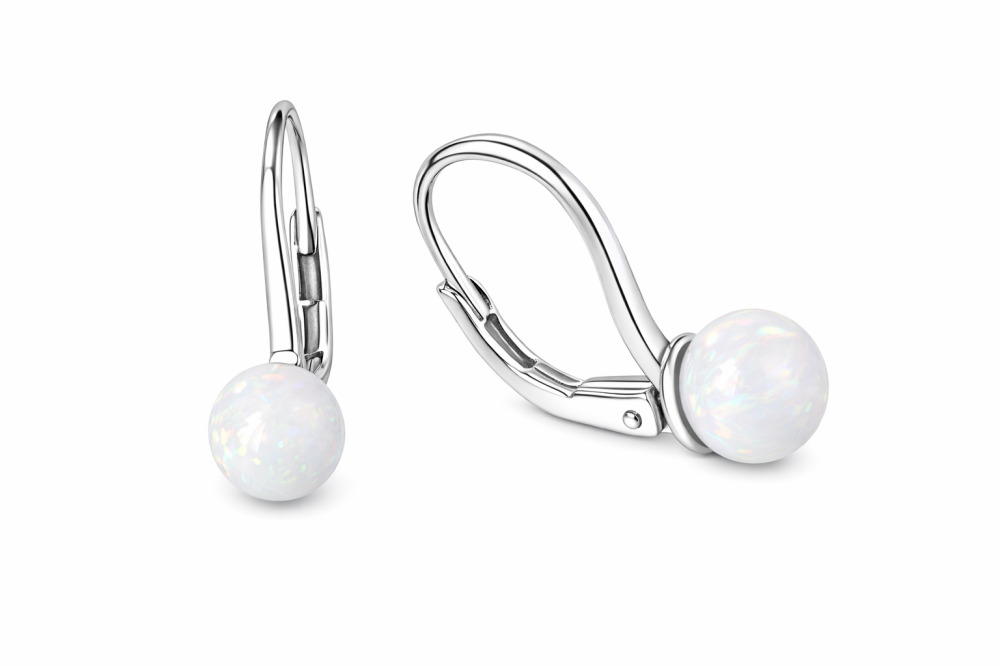 Tyto stříbrné náušnice ze stříbra ryzosti 925/1000 zaujmou svou přirozenou jednoduchostí a jemným pohybem. Dominantou šperku jsou bílé opálové kuličky, jejichž mléčný odstín s decentními světelnými odlesky působí čistě, klidně a velmi elegantně.