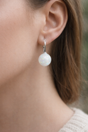 Opálová kulička je pevně uchycena a přiléhá přímo k háčku, díky čemuž náušnice působí kompaktně, upraveně a velmi příjemně se nosí. Minimalistické provedení nechává vyniknout samotný kámen a jeho přirozenou krásu bez rušivých detailů.