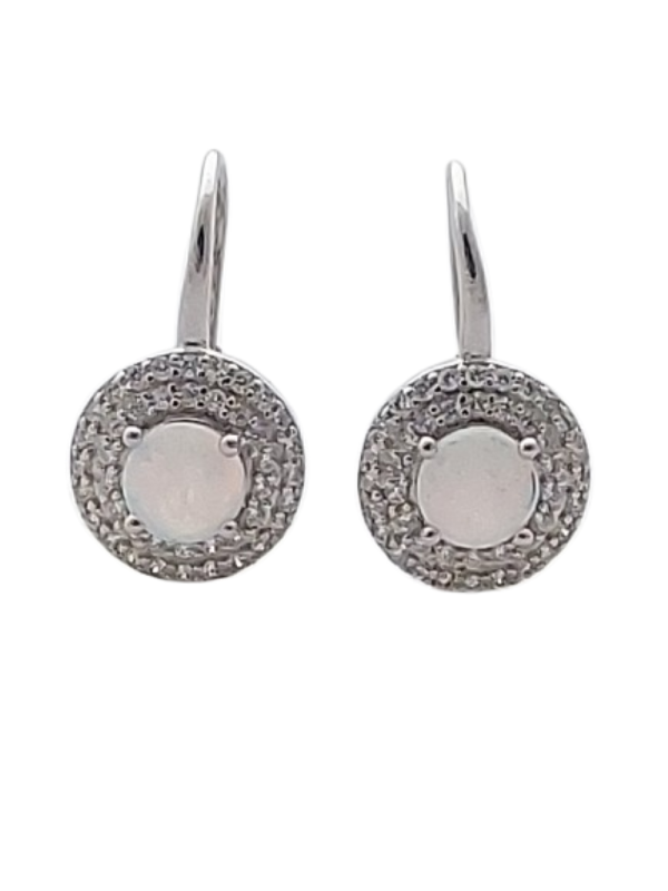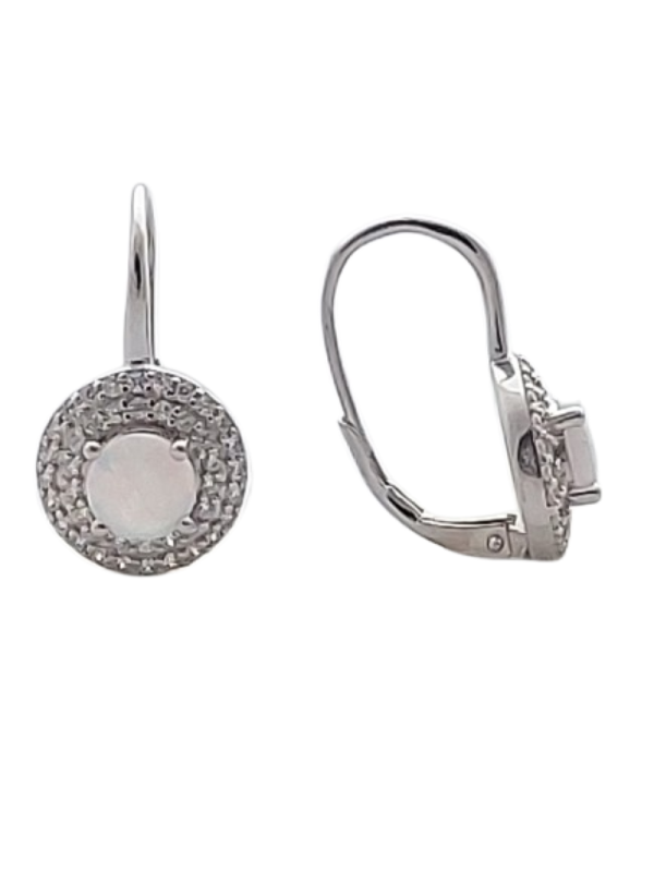 Tyto elegantní stříbrné náušnice v kruhovém tvaru jsou zdobeny jemně duhovým bílým opálem, který je obklopen třpytivými zirkony. Kruh je symbolem rovnováhy, jednoty a nekonečna, zatímco bílý opál přináší klid, harmonii a pozitivní energii.