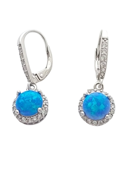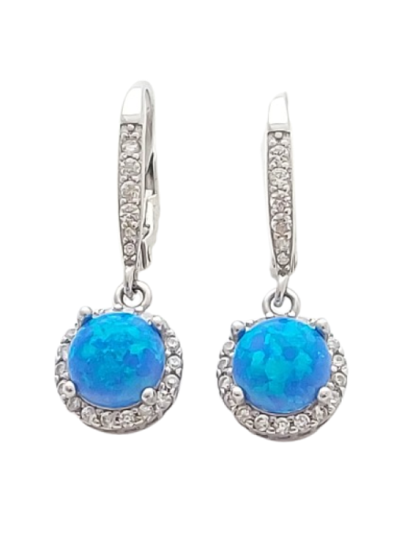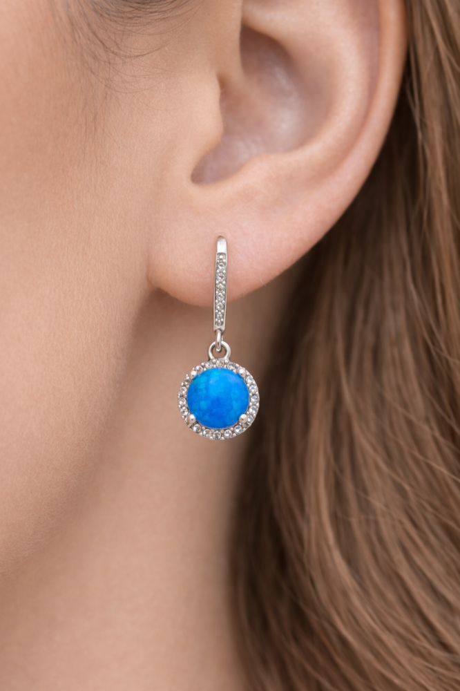 Tyto elegantní visací náušnice jsou vyrobeny ze stříbra ryzosti 925/1000 a zdobeny modrým opálem, který okouzlí svou sytou barvou a jemnou mozaikovou strukturou s jedinečnou hrou světla. Centrální kámen je lemován čirými zirkony, jež dodávají šperku luxusní třpyt a podtrhují jeho výjimečný charakter.