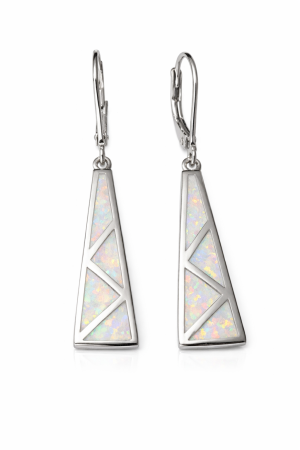 Tyto stříbrné náušnice ze stříbra ryzosti 925/1000 zaujmou moderním geometrickým designem a jemným opálovým leskem. Protažený trojúhelníkový tvar působí elegantně, opticky prodlužuje linii krku a dodává šperku lehkost i originalitu. Výplň tvoří bílý opál, jehož mléčný odstín s jemnými duhovými odlesky přináší pocit klidu, čistoty a ženské jemnosti.