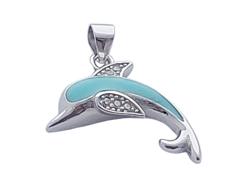 Tento elegantní přívěsek je vyroben ze stříbra ryzosti 925/1000 a zdoben světle modrým opálem, jehož jemný odstín připomíná klidnou hladinu moře. Stylizovaný delfín působí lehce a vyváženě, jako symbol přirozeného pohybu a radosti ze života.