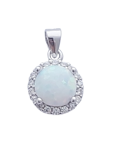 Opálový přívěsek kulatý s bílým opálem je vyrobený ze stříbra o ryzosti 925/1000. Povrchová úprava rhodiování - vzhled bílého zlata. Povrch je leštěný - vysoký lesk.