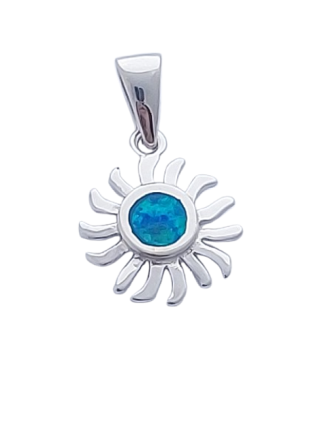 Opálový přívěsek sluníčko menší je vyrobený ze stříbra o ryzosti 925/1000. Povrchová úprava rhodiování - vzhled bílého zlata. Povrch je leštěný - vysoký lesk.