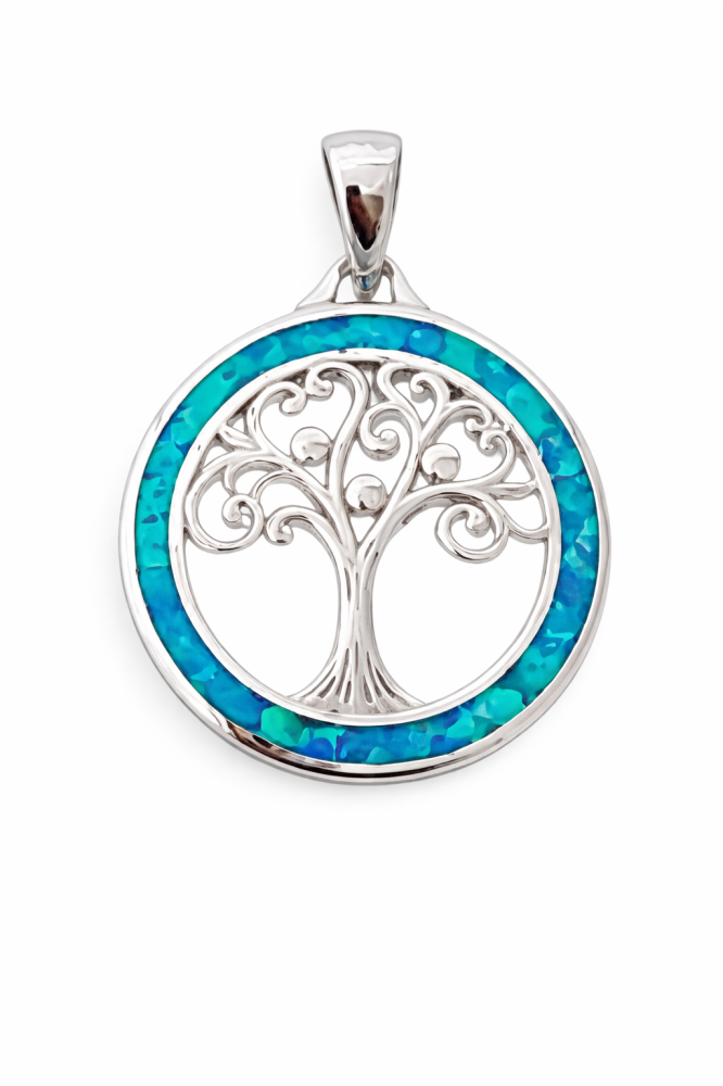 Strom života představuje růst, sílu, stabilitu a propojení všeho živého. Kruh symbolizuje jednotu a nekonečno. Modrý opál je kamenem klidu, harmonie a ochrany, podporuje vnitřní rovnováhu a pozitivní energii.