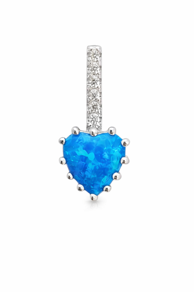Srdce je univerzálním symbolem lásky, oddanosti a emocí. Modrý opál je kamenem klidu, harmonie a ochrany, podporuje citovou rovnováhu. Zirkony dodávají šperku jiskru a luxusní nádech.