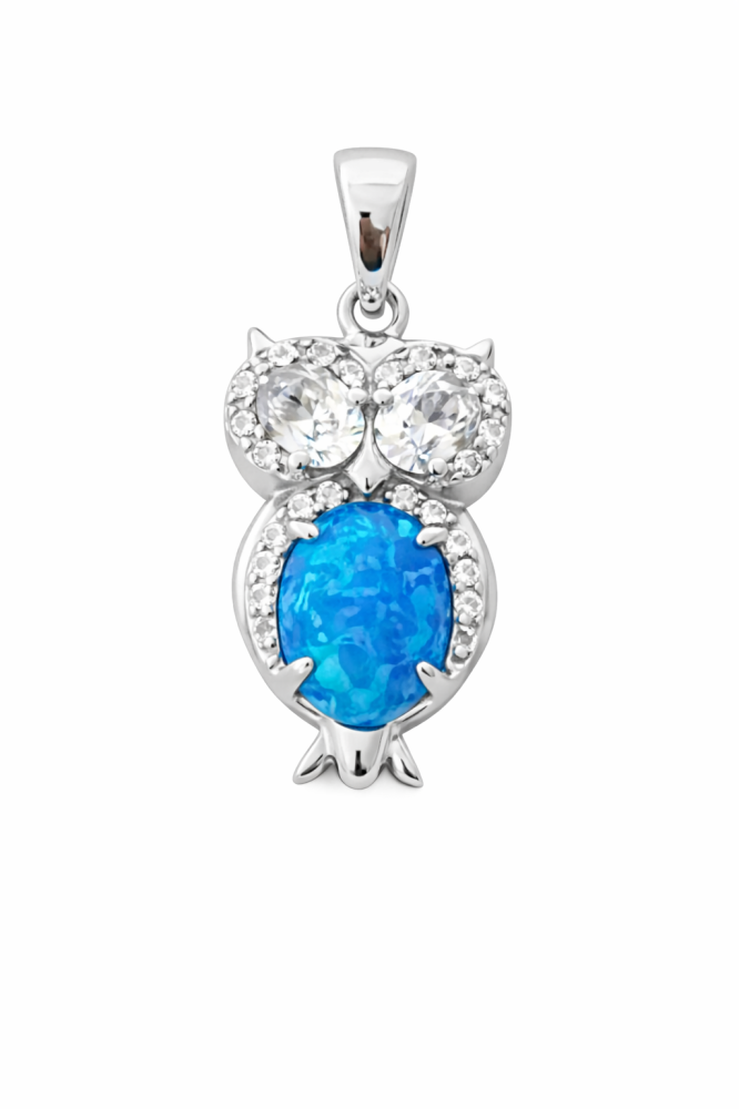 Tento půvabný stříbrný přívěsek ve tvaru sovy je zdoben zářivým modrým opálem, který tvoří dominantní střed šperku, a doplněn třpytivými zirkony. Sova je odedávna symbolem moudrosti, intuice a ochrany, zatímco modrý opál přináší klid, harmonii a pozitivní energii.