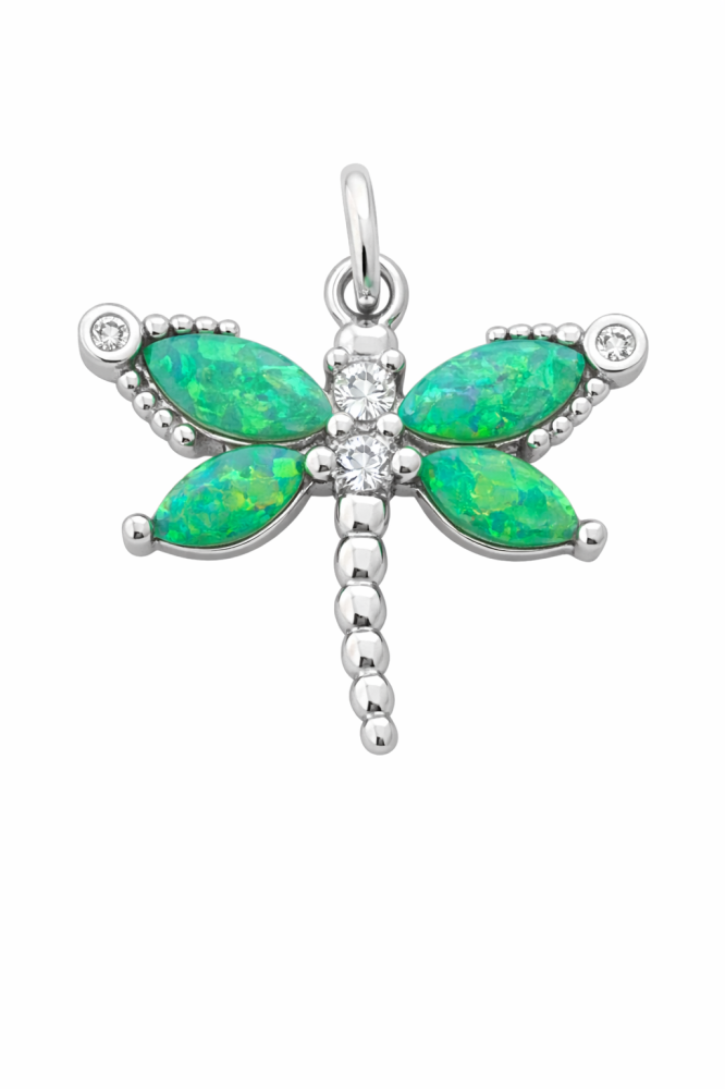 Okouzlující stříbrný přívěsek ve tvaru vážky se zeleným opálem je symbolem lehkosti, volnosti a elegance. Je zdoben zářivými modrými kameny, které krásně odrážejí světlo a dodávají šperku jedinečný třpyt. Tento šperk s modrým kamenem se skvěle hodí pro každodenní nošení i slavnostní příležitosti.