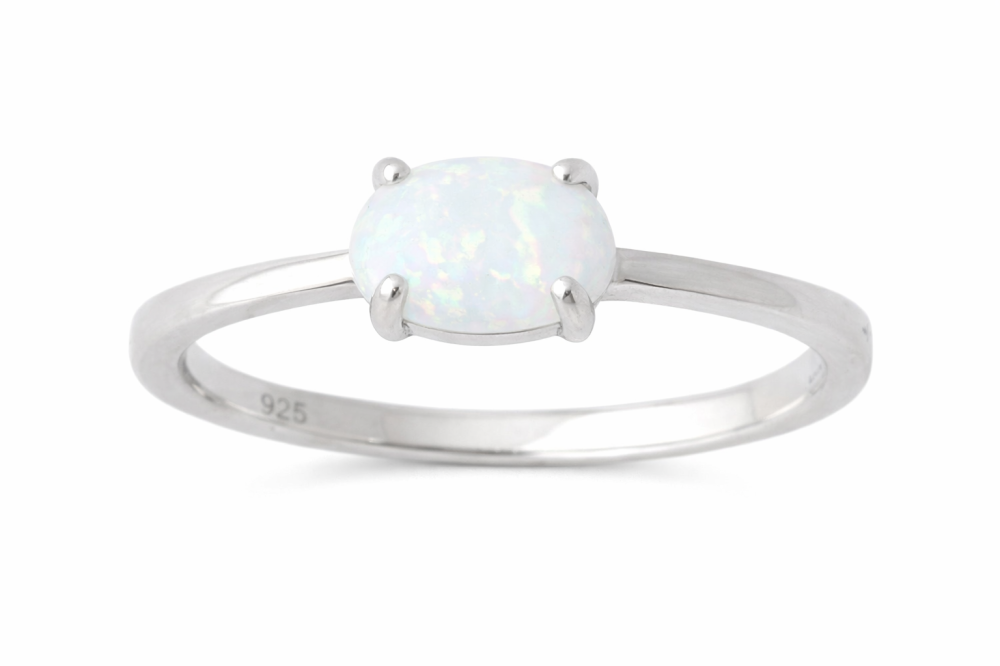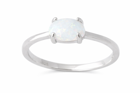 Oválný bílý opál jemně zachycuje světlo a při každém pohybu odhaluje měkké pastelové odlesky v tónech růžové, modré a zelené. Jeho mléčný základ působí čistě a velmi ženským dojmem.
