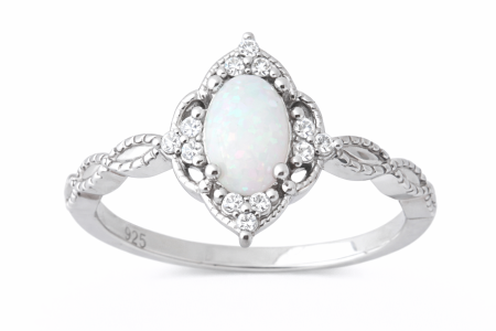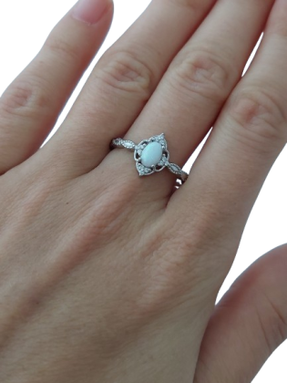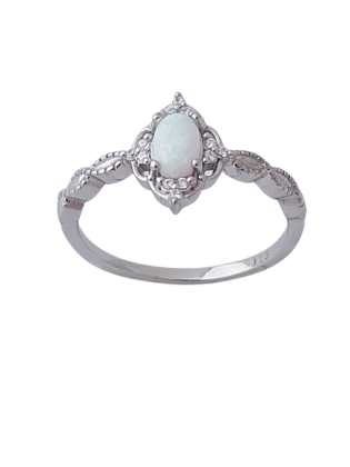 Tento prsten spojuje jemnost opálu s třpytem zirkonů v harmonickém designu.
