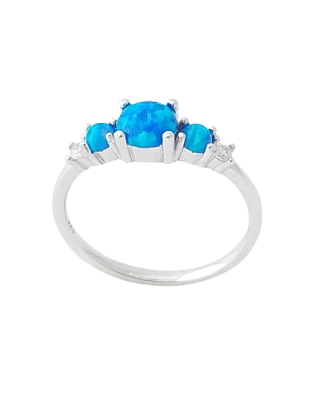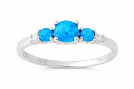 Dominantní středový modrý opál doplňují dva menší opály po stranách, které společně vytvářejí jemný, ale výrazný efekt. Jejich syté odstíny modré přecházejí od tyrkysové až po hlubší oceánské tóny a při dopadu světla ožívají fascinující hrou barev.