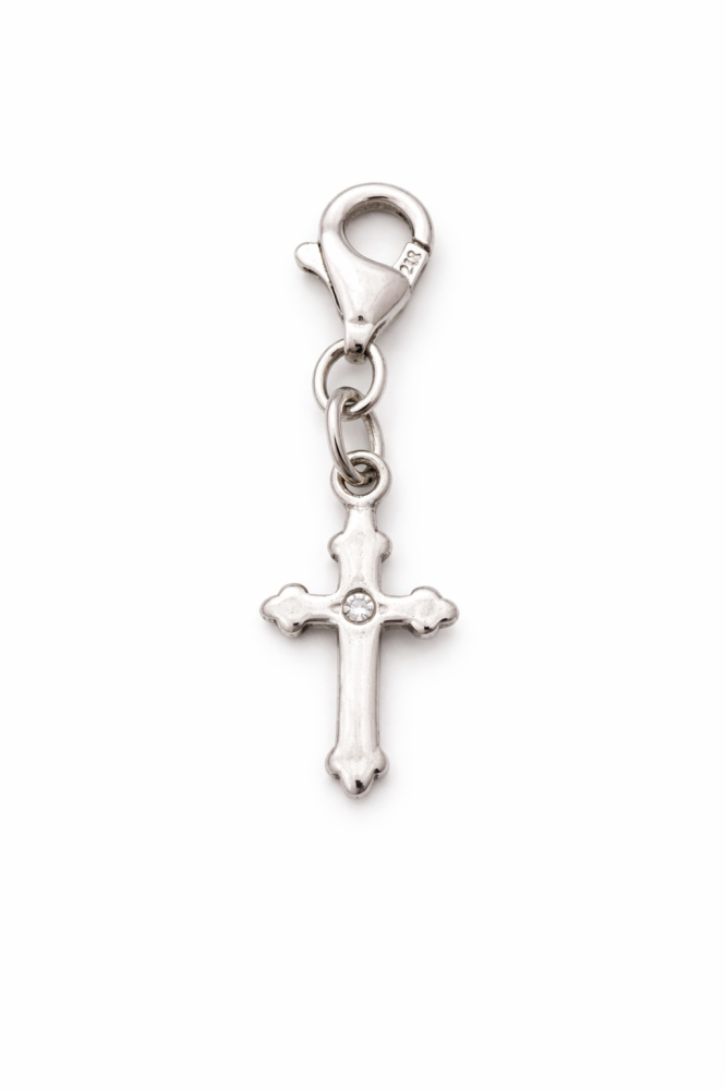 Křížek je symbolem víry, ochrany a rovnováhy. Zirkon ve středu představuje světlo na cestě – připomínku naděje i v náročných chvílích.