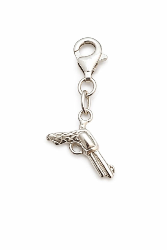 Výrazný detail, který zaujme… Tento stříbrný přívěsek ve tvaru revolveru je netradičním doplňkem pro ty, kteří chtějí vyjádřit svou osobnost, odvahu a jedinečný styl. Jemné zpracování a lesklý povrch dodávají šperku moderní a elegantní vzhled.