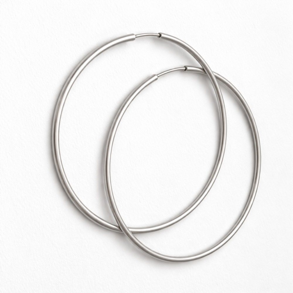 Tyto stříbrné náušnice kroužky o průměru 7 cm jsou skutečným vrcholem celé kolekce. Extra velký průměr vytváří silný vizuální efekt a dodává outfitu sebevědomý, moderní charakter. Přesto si kroužky zachovávají čistý minimalistický vzhled, který nepodléhá trendům.
