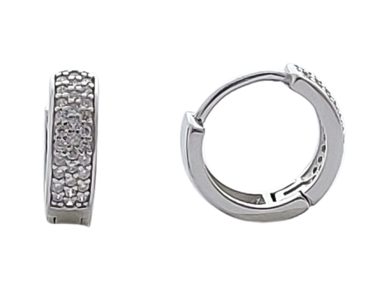 Stříbrné náušnice kruhy se zirkony III. jsou vyrobeny ze stříbra o ryzosti 925/1000. Povrchová úprava rhodiování - vzhled bílého zlata. Povrch je leštěný - vysoký lesk.