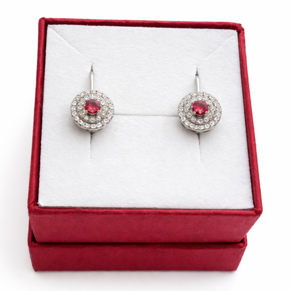 Tyto stříbrné náušnice s červeným zirkonem a čirými zirkony zaujmou na první pohled svou barvou i precizním zpracováním. Sytě červený středový zirkon je symbolem vášně, energie a sebevědomí, zatímco drobné čiré zirkony po obvodu dodávají šperku jemný, elegantní třpyt.