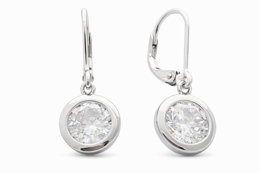 Tyto stříbrné visací náušnice s čirým zirkonem jsou dokonalým příkladem nadčasové elegance a jednoduché krásy. Precizně broušený čirý zirkon je zasazen do hladkého stříbrného lůžka, které nechává kámen maximálně vyniknout a vytváří jemný, ale výrazný třpyt.
