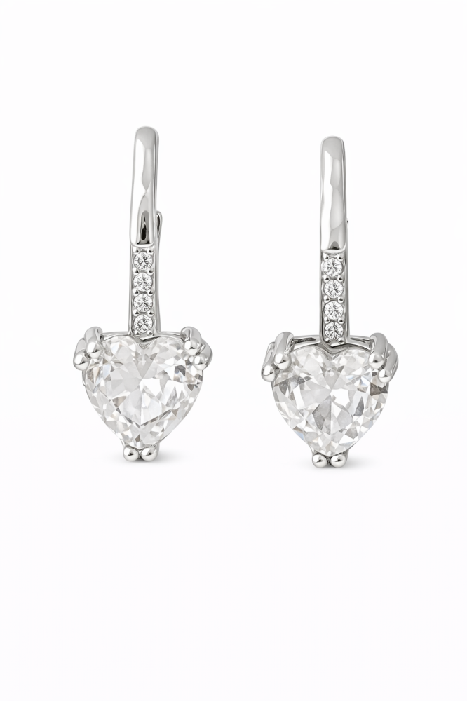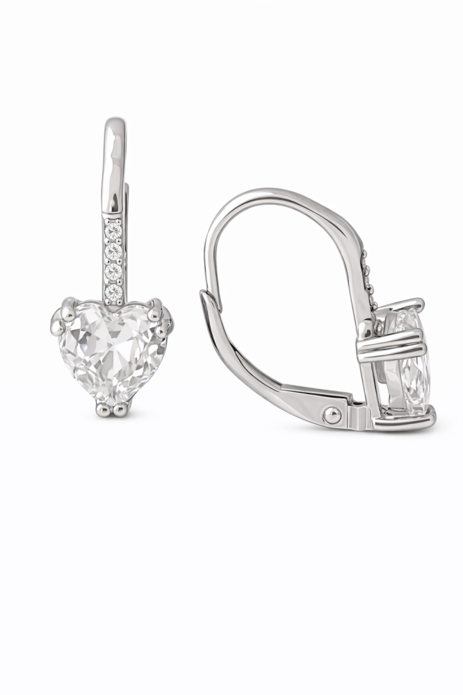 Tyto stříbrné náušnice ryzosti 925/1000 s čirým zirkonem ve tvaru srdce jsou symbolem nadčasové krásy a jemných emocí.