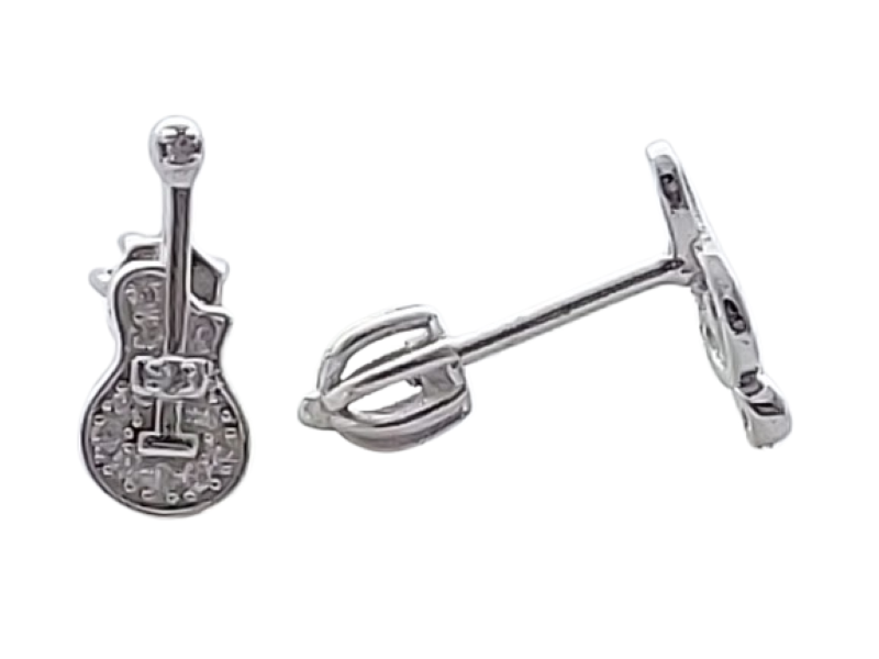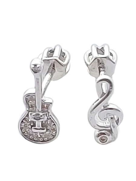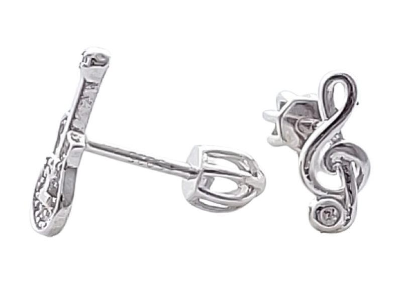 Tyto stříbrné náušnice s motivem houslového klíče a kytary propojují svět klasické i moderní hudby v jednom jemném šperku. Elegantní linie hudebních symbolů jsou doplněny čirými zirkony, které náušnicím dodávají decentní třpyt a zvýrazňují detailní zpracování.