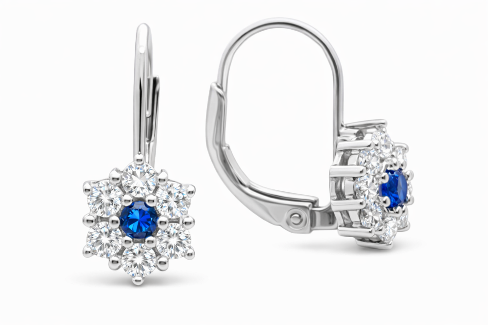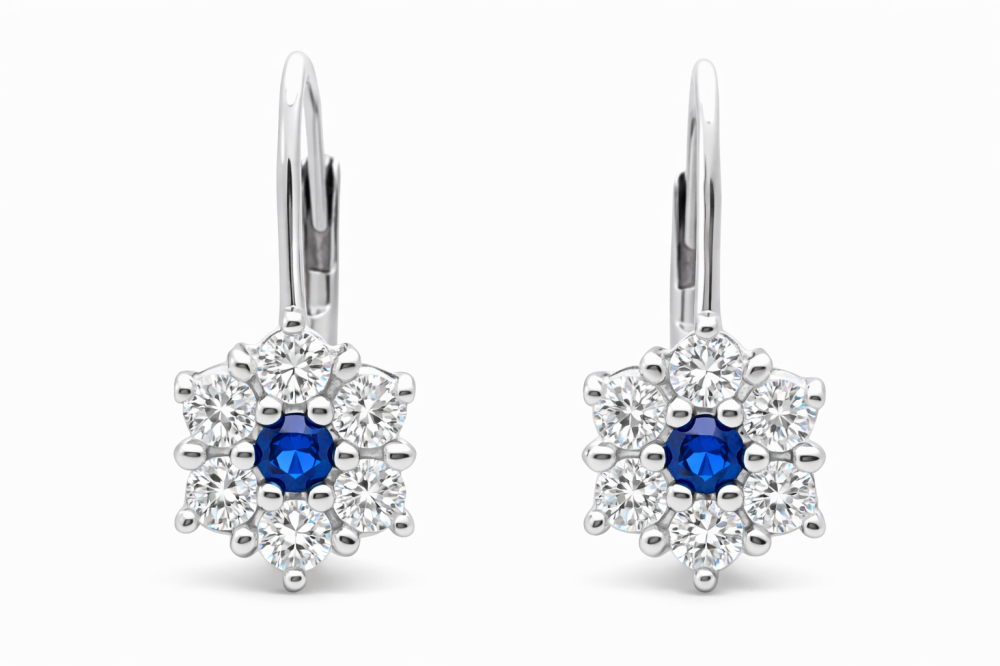 Tyto stříbrné náušnice ve tvaru kytičky okouzlí svou jemností, precizním zpracováním a elegantním barevným kontrastem. Tmavomodrý zirkon v safírovém odstínu tvoří střed květu a dodává šperku hloubku, noblesu a klidnou eleganci. Okvětní lístky jsou osazeny čirými zirkony, které vytvářejí jemný třpyt a krásně zvýrazňují celý tvar.
