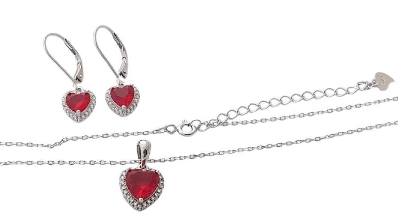 K náušnicím máme v sekci sety i přívěsek ve tvaru srdce s řetízkem.