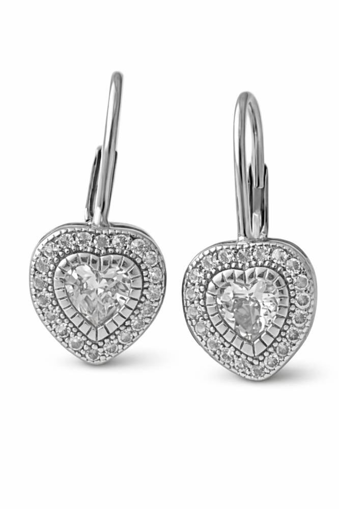 Tyto stříbrné náušnice ryzosti 925/1000 ve tvaru srdce vyprávějí příběh citu, něhy a elegance, která nepodléhá času.