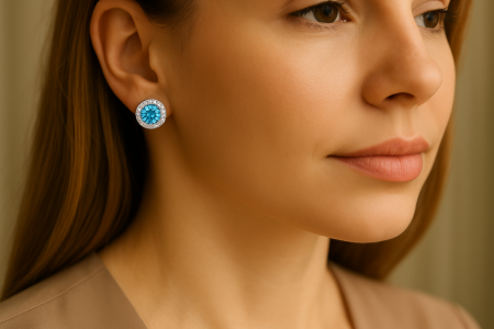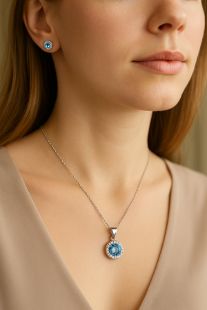 Dopřejte si šperk, který kombinuje nadčasovou krásu, kvalitu a jemnou eleganci. Tyto stříbrné náušnice z ryzího stříbra 925/1000 jsou navrženy s důrazem na detail a precizní zpracování. Dominantní bleděmodré zirkony okouzlí svou sytou barvou a dokonale vybroušeným povrchem, který se nádherně třpytí při každém pohybu. Kolem nich se nachází třpytivá obruba drobných čirých zirkonů, vytvářející efekt halo – symbol luxusu a jemné ženskosti.