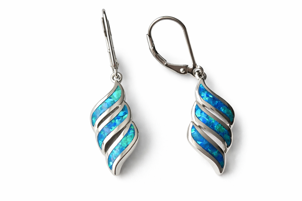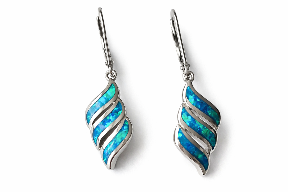 Dominantou šperku je zářivý modro-zelený opál, který při každém pohybu odráží světlo a vytváří fascinující hru barev připomínající hlubiny oceánu, třpyt mořské hladiny i tajemnou záři polární oblohy. Díky tomuto efektu jsou náušnice nepřehlédnutelným doplňkem, který přitahuje pozornost svou přirozenou elegancí.