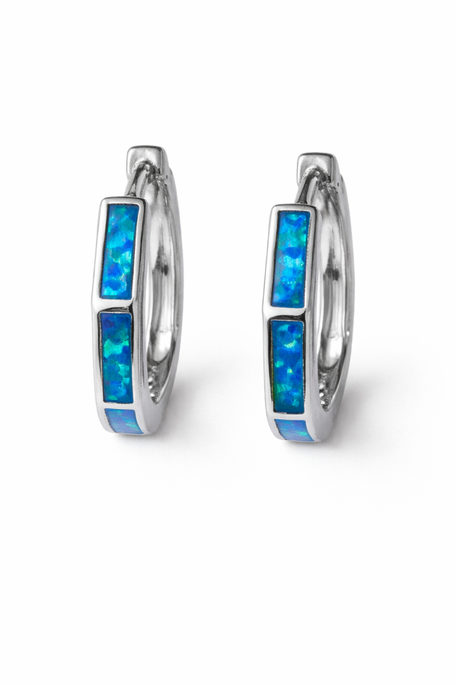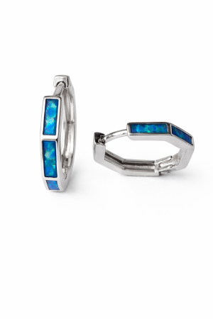 Tyto stříbrné náušnice s opálem jsou ztělesněním jemné elegance a moderního designu. Precizně zpracované kroužky z kvalitního stříbra ryzosti 925/1000 zdobí opál s okouzlujícími modrozelenými odlesky, které se mění podle světla a pohybu.