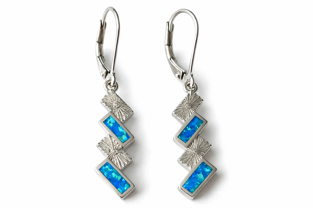 Tyto stříbrné náušnice s modrým opálem zachycují magii světla, pohyb mořských vln a jemnou ženskou energii v jednom elegantním designu.