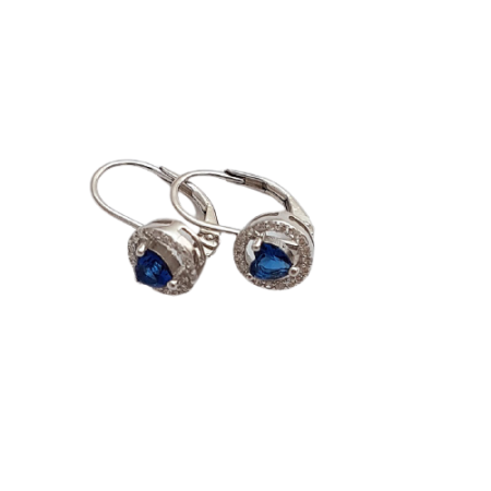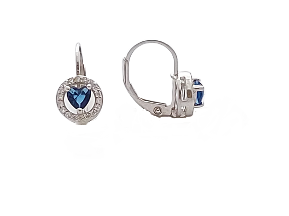 Stříbrné náušnice kulaté s tmavěmodrým zirkonem ve tvaru srdce na klasické zapínání. Rozměr náušnic: 0.8 cm ( se zapínáním 1.6 cm ) x 0.8 cm Hmotnost náušnic: 1.7 g, náušnice jsou vhodné i pro děti.