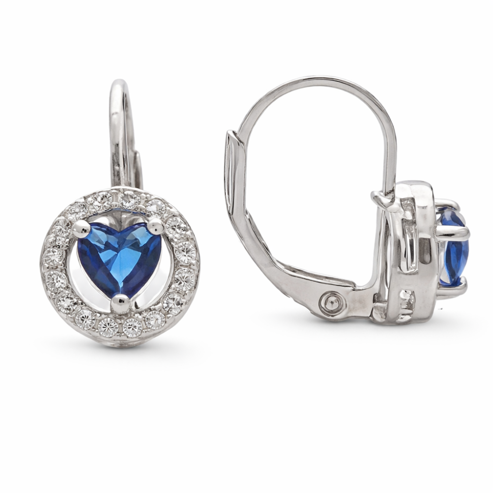 Tyto jemné stříbrné náušnice zaujmou svým romantickým designem s modrým zirkonovým srdíčkem, které je zasazeno do decentního lemování z čirých zirkonů. Díky menší velikosti působí náušnice velmi elegantně a jsou vhodné i pro drobnější uši.