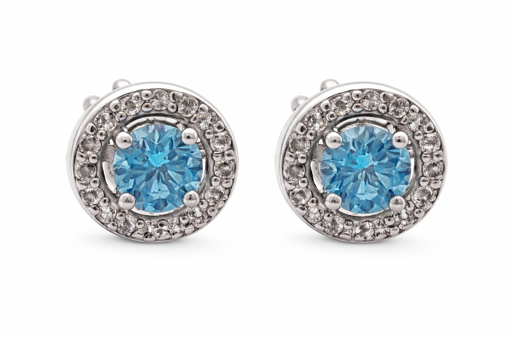 Tyto elegantní stříbrné peckové náušnice zaujmou svým čistým a nadčasovým designem. Dominantou je modrý zirkon zasazený do středu, který je obklopen jemným lemováním z drobných čirých zirkonů, dodávajících šperku krásný třpyt.
