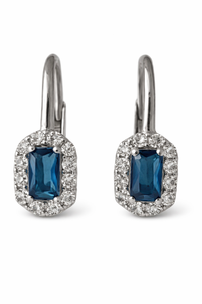 Tyto stříbrné náušnice ryzosti 925/1000 zdobí hluboce modrý zirkon, jehož barva připomíná klidnou noční oblohu těsně po setmění. Je obklopen jemným lemem z čirých zirkonů, které zachytí světlo při každém pohybu a dodají šperku jiskru elegance.
