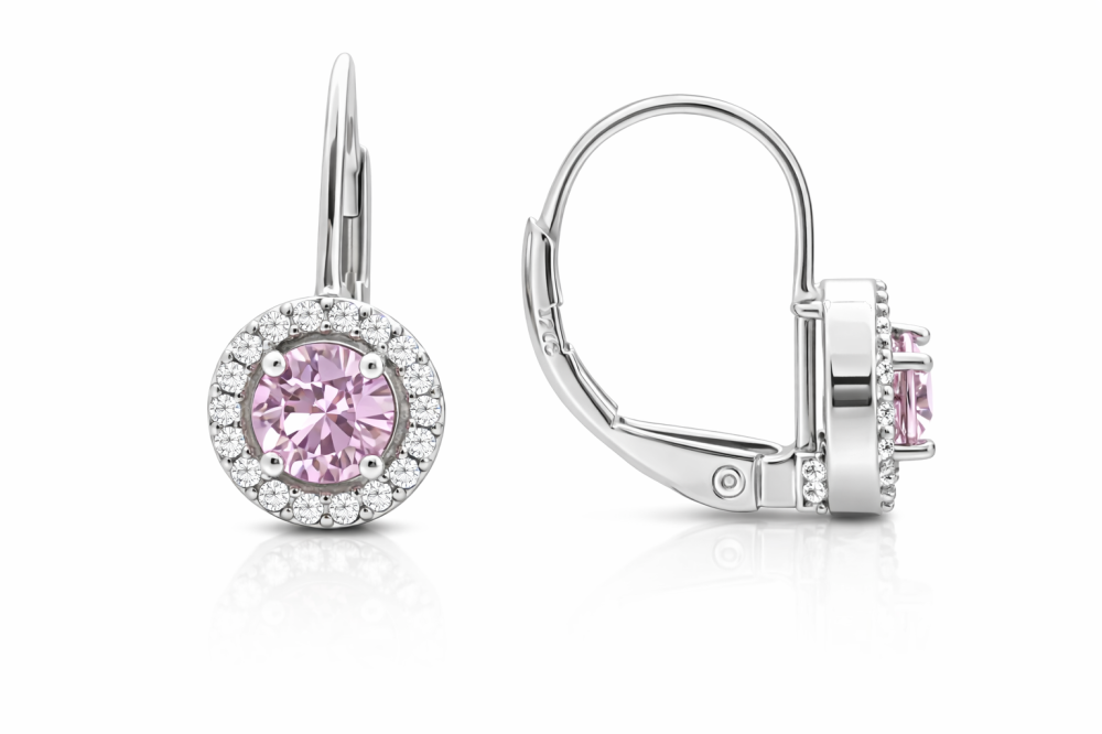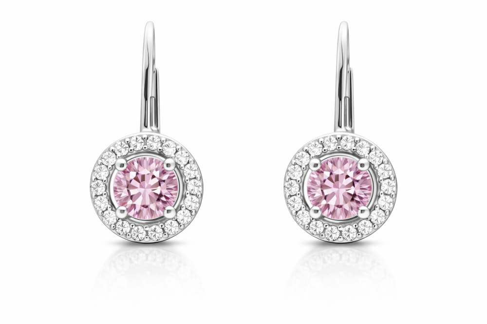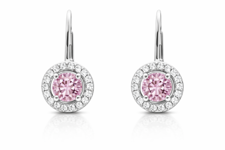 Tyto stříbrné náušnice s růžovým zirkonem okouzlí svou jemností a ženským půvabem. Růžový středový zirkon působí něžně a elegantně, zatímco kruh drobných čirých zirkonů dodává šperku krásný třpyt a optickou hloubku.