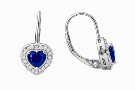 Tyto stříbrné náušnice ve tvaru srdce zaujmou svou jemností a harmonickým barevným kontrastem. Modrý zirkon ve středu symbolizuje klid, důvěru a eleganci, zatímco lem z čirých zirkonů vytváří jemný halo efekt, který šperku dodává krásný, vyvážený třpyt.