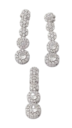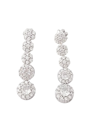 Stříbrné náušnice se zirkony ve tvaru kuličky s čirými zirkony, zapínání na šroubek. Rozměr náušnice: 2,4 x 0,6 cm v nejširším místě. Hmotnost náušnic: 3,0 g